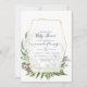 Convite de chás de fraldas de madeira verde com ervas selvagens, samambaias, folhas e eucalipto com estrutura geométrica de ouro personalizável para suas especificidades de evento.
