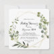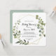 Esse chá de fraldas geométrico de caligrafia tropical em ouro é perfeito para um simples chá de fraldas. A design apresenta lindas folhas verdes pintadas à mão, enfeitando um quadro geométrico dourado.