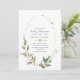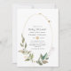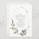 Convite de chá de fraldas verde floral de aquarela em tons pastéis com quadro geométrico dourado personalizável para suas especificações de evento.