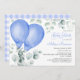 Convites Chá de fraldas Gingham Cute Ballons Azul