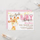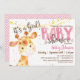 Garota girafa convite para chá de fraldas. Selva cor-de-rosa, animal safari convidado.