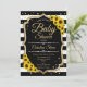 Chá de fraldas Girassol Black White Stripes Convite. Design branco preto elegante com brilho falso. Apresenta listras brancas e pretas e girassóis. Perfeito para um Chá de fraldas na moda.