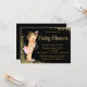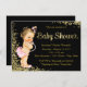 Convite para chá de fraldas de folha de preto e dourado com bonito escrita em folha de ouro e adorável menina vestindo calças cor-de-rosa e cordas de pérolas num fundo brilhante de ouro. Você pode personalizar facilmente este elegante glitter dourado e convite de chá de fraldas de folha de alumínio adicionando seus detalhes no estilo de fonte e na cor de sua escolha. Você também pode alterar a cor de fundo. Esta é uma design impressa sem pérolas de folha de alumínio reais ou brilho.
