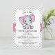 Convites Chá de fraldas Glitter do Elefante Rosa Virtual