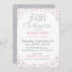 Convites Chá de fraldas Glitter Prateado e Sprinkle Rosa