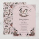 Este Chá de fraldas Gótico Rock a Bye Invitation apresenta ilustrações desenhadas à mão de um cavalo vitoriano de balanço de madeira, raven preto, rosas, flores silvestres, folhagem, teias de aranha e morcegos voadores, todos contra um elegante fundo rosa-pincelado. A parte traseira apresenta um padrão elegante com esses mesmos elementos. Todo texto é editável.