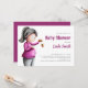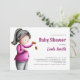 Convite simples e ousado para o chá de fraldas, com uma ilustração da mãe, para vestir uma camiseta rosa e segurar um par de dormentes para bebês. Ilustrada e projetada por Patricia Alvarez.