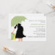 Os convites para Chás de fraldas de na moda apresentam uma bela ilustração vetorial de uma mãe grávida segurando um guarda-chuva padrão de bolinhas e dois sacos de presentes.