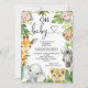 Greenery Safari Animal Chá de fraldas Convite Safari teme convite para chás de fraldas neutro em relação ao gênero, com sete animais da selva e muito verde. Este convite para o chá de fraldas de safari do bebê também apresenta um curso de caligrafia moderna com coração.