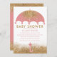 Convites Chá de fraldas guarda-chuva Dourado, cor-de-rosa-b