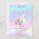 O convite para chás de fraldas bonito apresenta um cisne adorável em um fundo holográfico. Esses convites para chuveiros de bebês são facilmente personalizados para seu evento simplesmente adicionando seus detalhes.