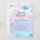 O convite para chás de fraldas bonitos apresenta um fundo holográfico com estrelas e nuvens lisas. Esses convites para chuveiros de bebês são facilmente personalizados para seu evento simplesmente adicionando seus detalhes.