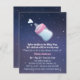 Este convite de chá de fraldas temático do espaço vem com uma garrafa de leite para bebês rosa e um espaço de gradiente de galáxia de azul e roxo. A design é inspirada por uma Via Látea no espaço. Personalize com os detalhes do seu chá de fraldas nos modelos de texto fornecidos.