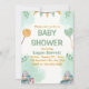 Este adorável convite para o chá de fraldas apresenta uma paleta de cores verde e amarela divertida, perfeita para celebrar novos começos. A design ilustrativa e bonita mostra elementos macios e alegres como brinquedos para bebês, garrafas e nuvens aconchegantes, criando uma vibração quente e acolhedora que é ideal para uma celebração alegre de chás de fraldas.
