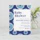 Convite para Chá de fraldas Impressão de cera africana azul e branca