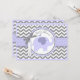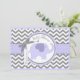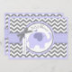 Cinza de chic e impressão de chevron branco com contraste de lavanda e um elefante de lavanda giro com pássaro empoleirado atrás e arco de aparência 3D e placa de convite para chá de fraldas de menina de fita.