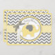 Impressão chic e chevron branco com contraste amarelo e um elefante amarelo agudo e um arco de aparência 3D e uma placa de convite para chá de fraldas neutro em relação ao gênero.