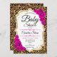 Convite para chás de fraldas. Design cor-de-rosa e branca elegantes com ouro brilhante e impressão de leopardo. Possui fonte de script de tendência e rosas rosa-quente. Perfeito para um Chá de fraldas na moda.
