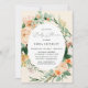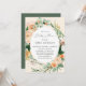 Lindos convites para bebês com um elegante tom pastel neutro e neutro molhado de cor aquática quadro floral botânico em tons suaves de pêssego, laranja, pincel suave, amarelos e muitos tons de verde de sábio verde a verdes brilhantes e profundos. Seus detalhes personalizados são exibidos em um elevado layout tipográfico que coloca o convidado de honra em frente e no centro.