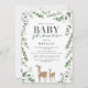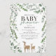 Chá de fraldas moderno de veados de madeira eucalipto. Na moda elegante moderno veado e design de chá de fraldas botânico.