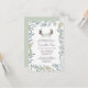 VG Convida um chá de fraldas de cerco de veado bonitinho apresenta um verde-botânico de cor aquática e flores bonito azuis que enquadram seus detalhes de festas em uma tipografia de escrita de caligrafia. Uma cor verde de sábio elogiosa enfeita a parte de trás do seu convite. Uma escolha rústica, porém boho, para primavera, verão, outono, inverno e ver e codimentar chás de fraldas. Projetado por Victoria. Para mais informações, visite www.zazzle.com/vginvites