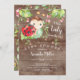 Convite para Senhora Chá de fraldas Bonita, com a mais doce joaninha com flores bonito cor-de-rosa, sobre um popular fundo de madeira rústica para um chá de fraldas feminino.