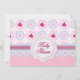 Um convite para chás de fraldas agradável em tons azuis e cor-de-rosa pastel apresenta pequenas joias e flores com fitas bonito correspondentes e outros detalhes deliciosos na frente e no verso do cartão. O texto na parte traseira da placa está pronto para ser substituído por suas informações. Itens correspondentes disponíveis na minha loja.