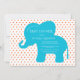 Silhueta de elefante de bebê azul, branca, com detalhes de evento na forma dentro. Os polkadots de laranja-claro aumentam a doçura desse convite. Tão doce quanto pode ser. Um convite perfeito para um evento perfeito. Perfeito para o chá da menina. 100% de satisfação do cliente na Zazzle todos os dias.