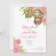 Chá de fraldas de Lama Personalizado Convite de Ricaso ... com padrão colorido rosa e branco detalhado atrás ... uma bonito flor e design feminina bolinhas para a mãe ser