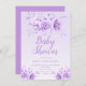 Modelo de convite Floral Roxo do Partido Elegante do Chá de fraldas. Apresentando um arranjo de flores moderno.