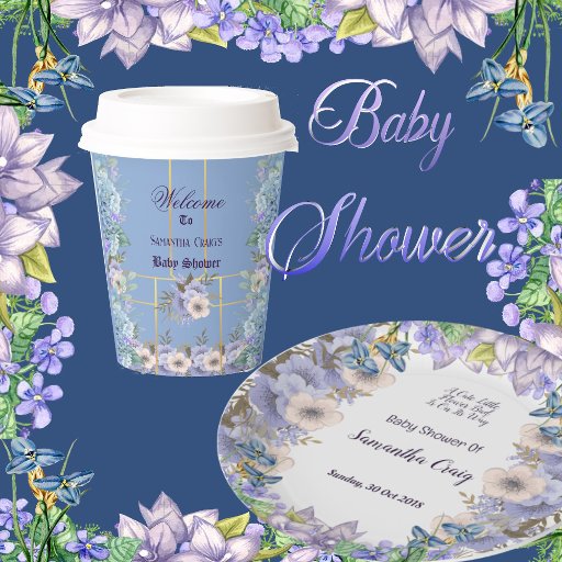 Pastel Blue Hydrangea Purple Flora Baby Shower SetCriado por Designer Artist