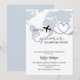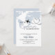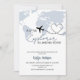 Este design apresenta um chá de fraldas de tema de aventura "A Little Explorer is Landing Soon" com um mapa de cor da água azul e um pequeno plano giro na rota. Tema de chá de fraldas de bebê minimalista e moderno.