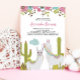 Personalize facilmente este belo convite com as suas próprias informações de eventos. Design apresenta lama e trabalho de arte cactos bonitos e coloridos com flores cor-de-rosa. Compre como download instantâneo ou envie convites diretamente para sua casa.
