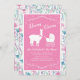 Convites Chá de fraldas Llama Menina Rosa