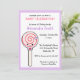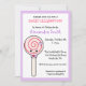 Que chá de fraldas doce você vai ter com esse convite de aniversário de doce doce. O pirulito do desenho animado está sorrindo e é decolado em uma gravata de arco e pronto para uma festa. Veja todos os produtos correspondentes na loja Super Cute Kawaii.