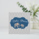 Um belo convite para chá de fraldas de um elefante temático. Um padrão de cópula de cinza, quadro azul marinho e um par de elefantes para bebês-mãe, é apresentado neste convite ao chá de fraldas moderno. Perfeito e fofo. Personalize facilmente o seu chá de fraldas!
