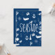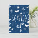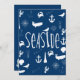 Praia marítima e tema oceânico náutico em azul e branco marinho
