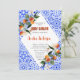 Bonito convite de chá de fraldas de laranja mediterrânico de cor aquática. Este design de laranja moderno pode ser personalizado para um chá de fraldas, um brunch, um almoço, um janto ou outra ocasião. Entre em contato com o designer para verificar se há variações neste design ou se há produtos correspondentes.