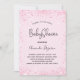 Para um chá de fraldas, comemorando um menino. Uma rosa claro, fundo cor-de-rosa. Decorado com pó de brilho falso. Personalize e adicione o nome da mãe e os detalhes da festa. O nome e o texto: Chá de fraldas são escritos com um script de estilo manuscrito