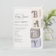Um design único para uma menina, com uma ilustração de blocos de bebês de madeira com a palavra bebê em cores modernas e sutis. Personalize sua modelo frente e trás.