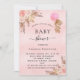 Para um chá de fraldas moderno estilo boho. Um plano de fundo metálico de gradiente cor-de-rosa-claro. Decorado com ouro rosa e flores cor-de-rosa, rosas, grama-pampas e ursinha-peluche segurando um balão rosa. Personalize e adicione um nome e detalhes da parte.