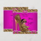 Afro-americano, Chá de fraldas Bonitinha, Rosa Quente, Calçado Preto e Dourado Leopard Alto Heel, Arco, convite Diamond Ribbon, novo bebê, menina. chá de fraldas, chá de fraldas, chá de menina, de menina, chá de fraldas rosa, elegante, chá de fraldas bonito, rosa púrpura, bebê, garota, chá, designer, design, personalizável, modelo, festa, zago, melhor ,