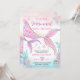 Celebre a chegada do seu pequeno com o nosso Convite para Chás de fraldas Sereia! Este convite impressionante apresenta tons brancos de rosa, roxo e ouro, com caudas de sereia brilhantes, conchas espumantes e ondas oceânicas criando uma cena sonhadora submarina. É a escolha ideal para honrar a sereia de estilo que está chegando. Faça um salto com este design cativante que certamente encantará seus convidados! BBS304