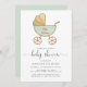 Este convite de chá de fraldas neutro por sexo bonito apresenta uma cor verde-menta pastel e uma aquarela dourada de uma carruagem de bebê retrô. Você pode personalizar o texto na carruagem ou deixar o vazio. "chá de fraldas" é escrito em um script de na moda. Você pode personalizar facilmente com os detalhes do chá.