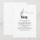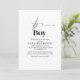 Clássico, moderno e tão chique! Este chá de fraldas minimalista "É um Menino" é perfeito para aqueles que amam elegância eterno. Projetado com uma elegante estética preto-e-branco, ele adiciona um toque de sofisticação à sua celebração. Quer você esteja hospedando um brunch ou uma reunião íntima, este convite define o tom perfeito.