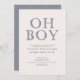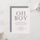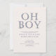 Crie o anúncio de bebê mínimo pastel perfeito e moderno, anúncio de bebê + convite para chá de fraldas com esta design de citação "Oh Boy", em uma super doce tipografia escrita à mão em azul-de-moda. Entre em contato com o designer para obter produtos correspondentes e variações de design. Copyright Elegant Invites, todos os direitos reservados.
