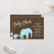 Elefantes Azuis Castanhos Tendy Modern Baby Shower Invtions.