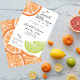 Este belo convite de chá de fraldas frutado moderno apresenta lindas fatias de cor d'água dos citros: laranja e limão verde, juntamente com moderno roteiro manuscrito e simples tipografia para sua informação. Estes convites são perfeitos para um bebê e uma menina! Crie o seu, clicando no botão "Personalizar".