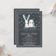 Na moda gêmeo bebê bebezinho coelho convite para chá com bonito flores cor-de-rosa sobre um popular fundo negro de quadro negro.