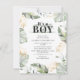 Garotos selvagens, calmos e elegantes, açari, convite para chás de fraldas de animais com girafa, efeito ouro e folhas verdes. Perfeito para convites de orçamento de chá de fraldas para rapazes